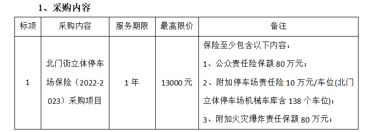北門街立體停車場保險(2022-2023)采購項目公告