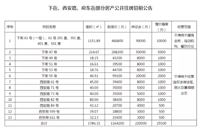 2.以上標(biāo)的租賃期限均為5年,上述標(biāo)的首年租金按成交價(jià),從第二年起在上年租金基礎(chǔ)上遞增3%。