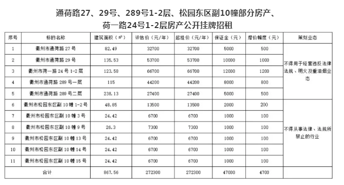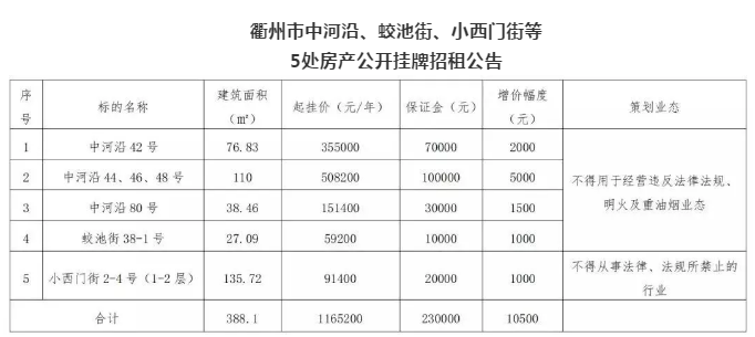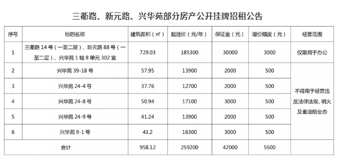 楊家巷部分房地產(chǎn)公開掛牌招租公告