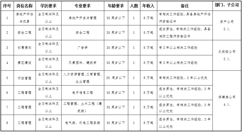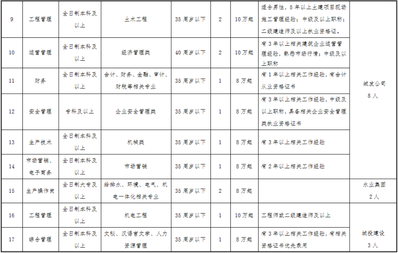 本次面向社會公開招聘衢州市城市建設(shè)投資集團(tuán)有限公司及下屬子公司國有企業(yè)工作人員共21人。具體招聘崗位、崗位(專業(yè))人數(shù)及其他條件要求詳見附表一。