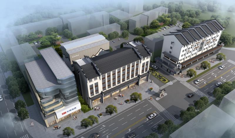 商業(yè)樓整體風(fēng)格從傳統(tǒng)徽派建筑風(fēng)格演化而來(lái),借鑒傳統(tǒng)徽派建筑的馬頭墻形式作為設(shè)計(jì)的手法及元素。