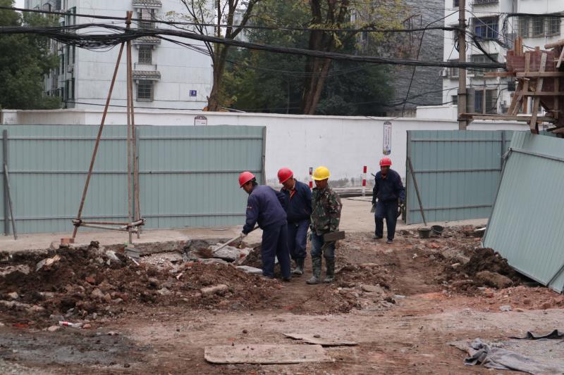 11月27日,走進(jìn)老電影院停車場項(xiàng)目施工現(xiàn)場,一片繁忙景象,叮叮當(dāng)當(dāng)?shù)氖┕ぢ暣似鸨朔?。?xiàng)目負(fù)責(zé)人現(xiàn)場“蹲點(diǎn)”,施工人員密切配合,各個(gè)工序有條不紊,所有人員和施工設(shè)備“火力全開”。