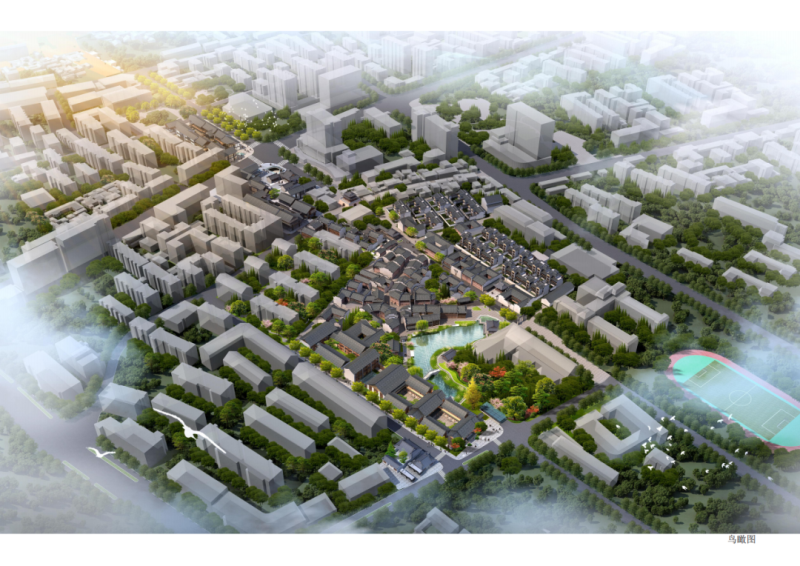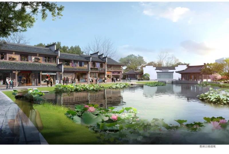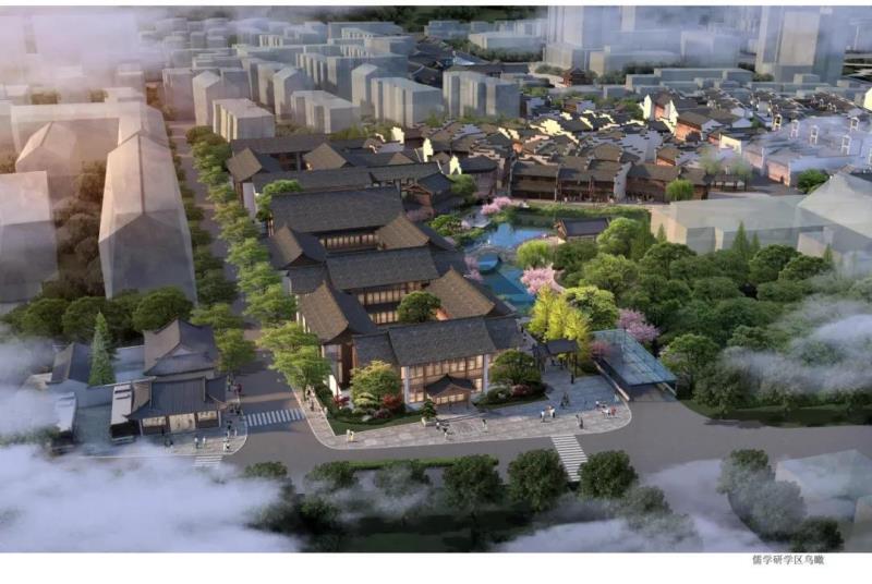 區(qū)塊三處于鐘樓和南孔家廟之間,建筑總面積約28000㎡,區(qū)塊內(nèi)文化展示以儒學文化為主題,形成文化體驗研學教育旅游觀光于一體的文化展示區(qū)。設(shè)計中亦植入了關(guān)于菱湖的歷史記憶,在該區(qū)塊東部區(qū)域展示了大片湖面,建筑上采用宋式風格,以再現(xiàn)菱湖的歷史風韻。