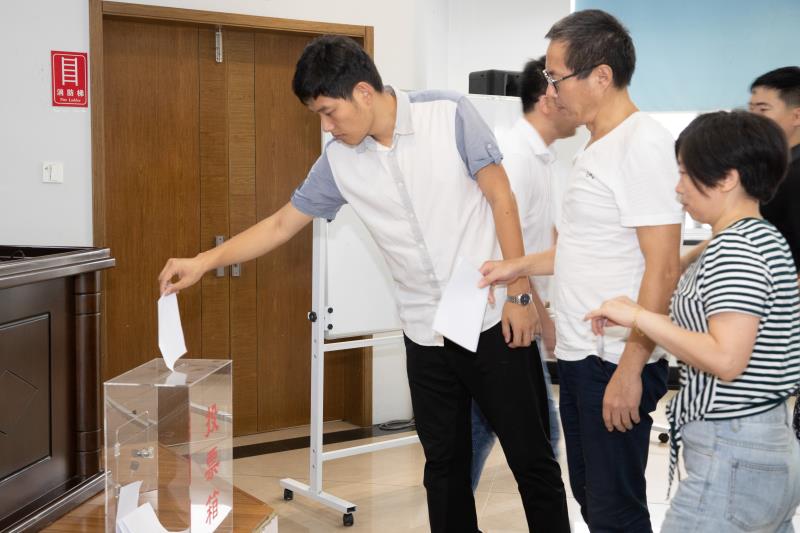 隨后,以無記名投票方式,選舉產(chǎn)生了第一屆工會委員會委員,王堅威當(dāng)選工會主席。