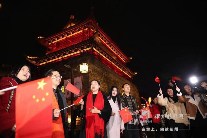 在這個一元復(fù)始,大地回春的節(jié)日夜晚。水亭門城樓外廣場上,歌聲與炫麗的5D光影大秀交相輝映,如一段嘹亮的號角,鼓舞著衢州人斗志昂揚地踏上2019年的逐夢征程。
